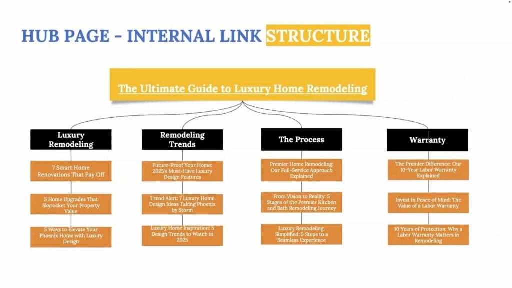 The Ultimate Guide to Luxury Home Remodeling has four subtopics—and I’m just using examples—and maybe three blog posts (see, I use the blog word!)