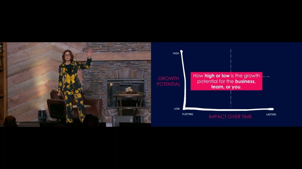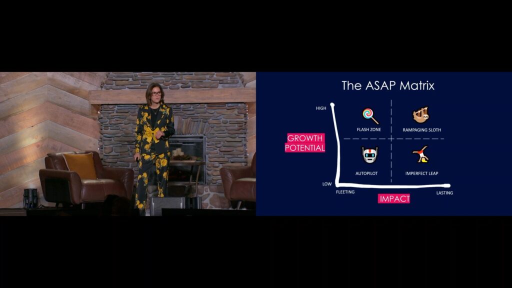In the bottom left down here: autopilot. Low growth, fleeting impact. It’s the everyday stuff that we do as part of our regular lives. The boxes to check, the things to handle, just get rid of it, get it off your plate. Stakes are low.
