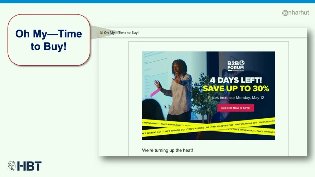 Nancy Harhut, behavioral-science marketer and co-founder at HBT Marketing, shared ways to make your marketing messages get attention and stick with your audience at B2B Forum 2025.