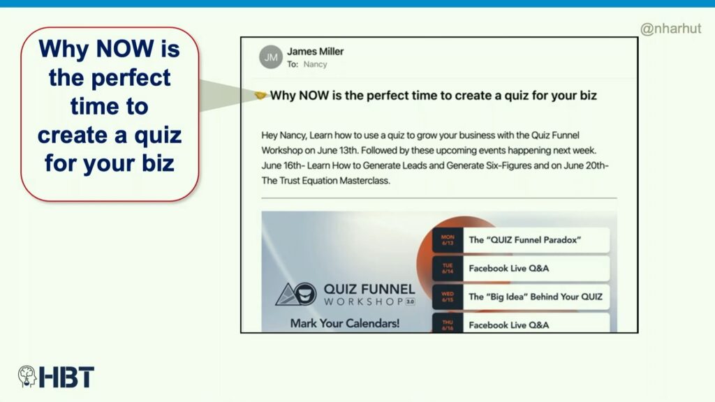 Or here we’ve got, “Why now is the perfect time to create a quiz for your biz?” They get that little rhyme at the end.