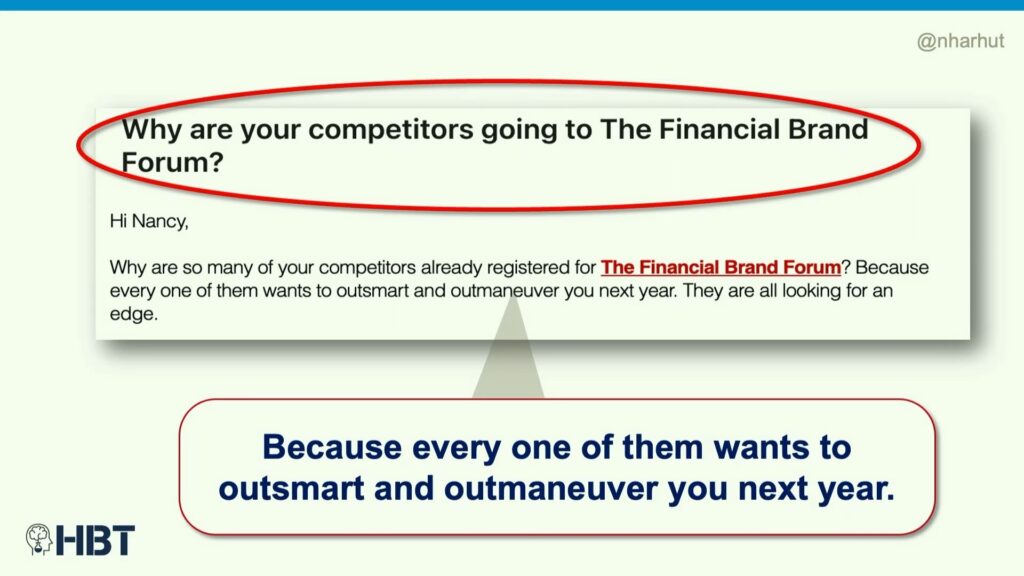 Well, here we have something called the Financial Brand Forum. And they say, “Why are your competitors going to the financial brand forum?” And this is targeted at banks and credit unions.