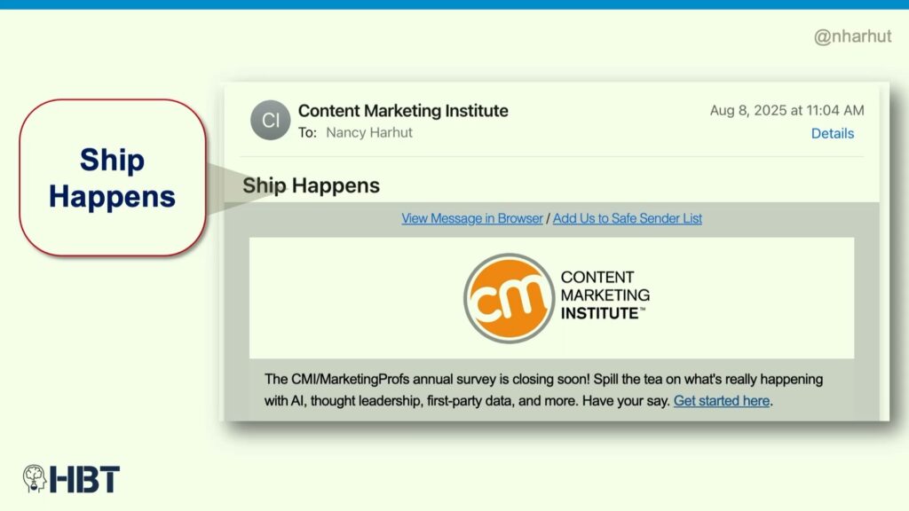 Here we have something from Content Marketing Institute and they say, “Ship Happens.”