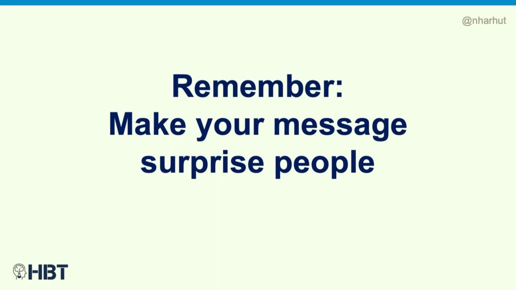 So what you want to do is, you want to make your message surprise people.