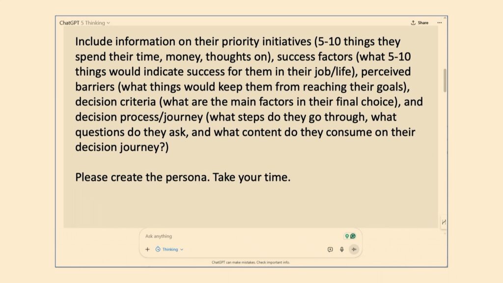 All of those factors that would create a persona, and then you tell it to execute: “Please create the persona, and take your time.”
