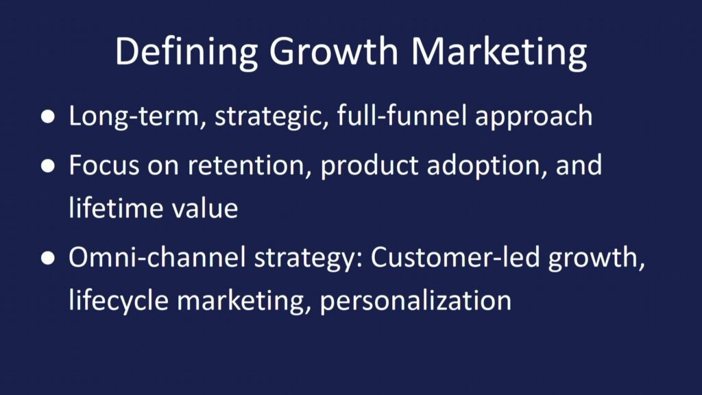 Defining growth marketing, it takes it a little bit further: it is a long-term, full-funnel strategy across the full buyer’s journey.