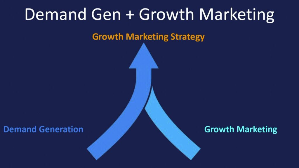 Another way to look at this… On the left-hand side, you’ve got a solid arrow up. That is your demand generation. I always say you need to have a solid demand gen engine before you can have a growth marketing strategy.