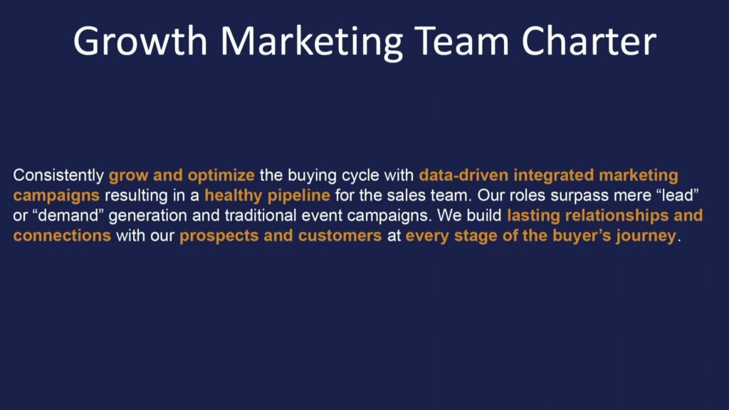 In my last job, it was really funny because I was asked, “Hey, can you put a definition again? What is your charter? What does your team do? You say you’re growth marketing. We have no idea what that means.”